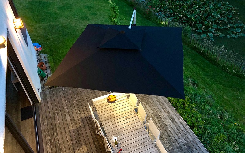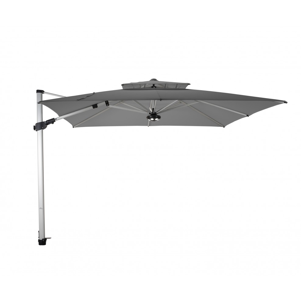 Fratello (italiensk for ‘bror’) er kjent for sine uendelige muligheter. Den følger solen ved å vippe til hver side og kommer med en stilig sølvgrå ramme. Med sine 300 x 300 cm. størrelse, vet du at alle dine gjester vil være trygge under denne sterke armen med sit sublime design.